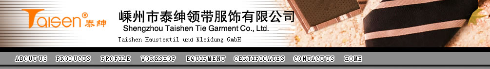 Shengzhou taishen krawatte & Co. wird in No.6, vierte Stra?e Krawatte industrieller Park, Shengzhou, Zhejiang, China aufgestellt. Sie umfa?t einen ge?ffneten Bereich von ungef?hr 10.000 Quadratmetern, wir ist in übereinstimmung mit Standardmainly ISO9001-2000 produziert Verzierungenwie Krawatten, Krawatten, Schals, Schultermarkierungen, usw.und Kleider. TAISHEN brand Krawatten genie?en hohes Renommee unter Kunden im In- und Ausland. Sie werden gut mehr als in 80 gro? oder in mittelgrossen M?rkten in China verkauft und exportiert in Ausland. Die Firma hat Gesch?ft Verh?ltnis zu vielen L?ndern wie Japan, Amerika, England, Australien, Kanada, Korea aufgebaut und arabische Emir?te gevereinigt. Seit der Firma, die gegründet wurde, waren die Produkte, die mehr als 10mal der Kontrolle der Textil-u. Kleid-Qualit?tskontrolle-Mitte des internen Gesch?ftsministeriums geführt wurden und anerkannt, da? alle theindexes mit dem vereinbarten Standard übereinstimmen. Die Firma besteht immer auf der Grundregel von Quality Zuerst, die vorderste Gutschrift. Aller Personal und Angestellten der Firma hoffen herzlichst, mehr Qualit?tsprodukte zu den Kunden zukünftig zur Verfügung zu stellen. |